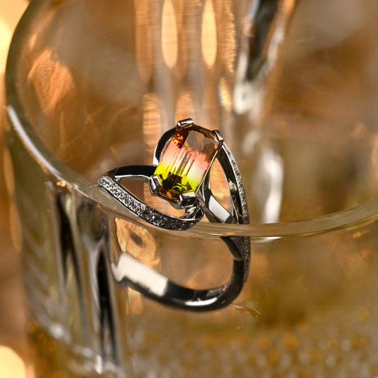 Beards Platinum Watermelon Tourmaline Ribbon Ring