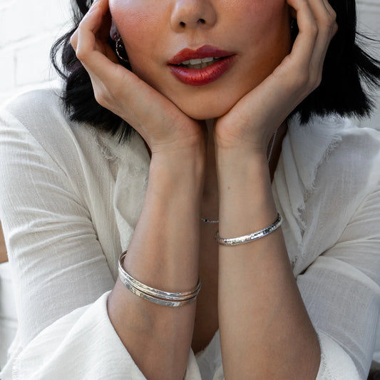 DOWER & HALL 3mm Hammered Nomad Bangle NBG25-S-MED