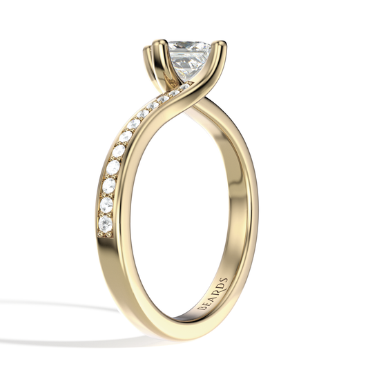 Classic Twist Solitaire Princess Cut Pavé Yellow Gold