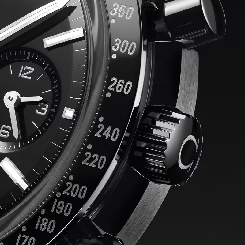 Every detail of the dial has been re-engineered for visual depth and clarity. Crafted in ceramic and bevelled like the legendary Moonwatch, its dual-layer design enhances readability, allowing the subdials to catch light from every angle. The result is an elegant yet purposeful display that reflects OMEGA’s dedication to both form and function.