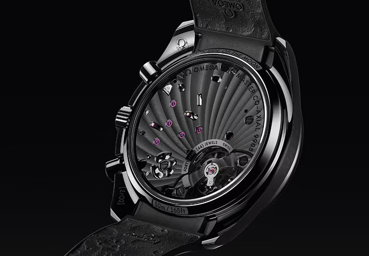 At its heart lies the manual-winding Black Edition Co-Axial Master Chronometer Calibre 9908, a movement defined by its exceptional precision and distinct matte-blackened bridges. Visible through the sapphire-crystal caseback, it offers both beauty and power in perfect balance.
