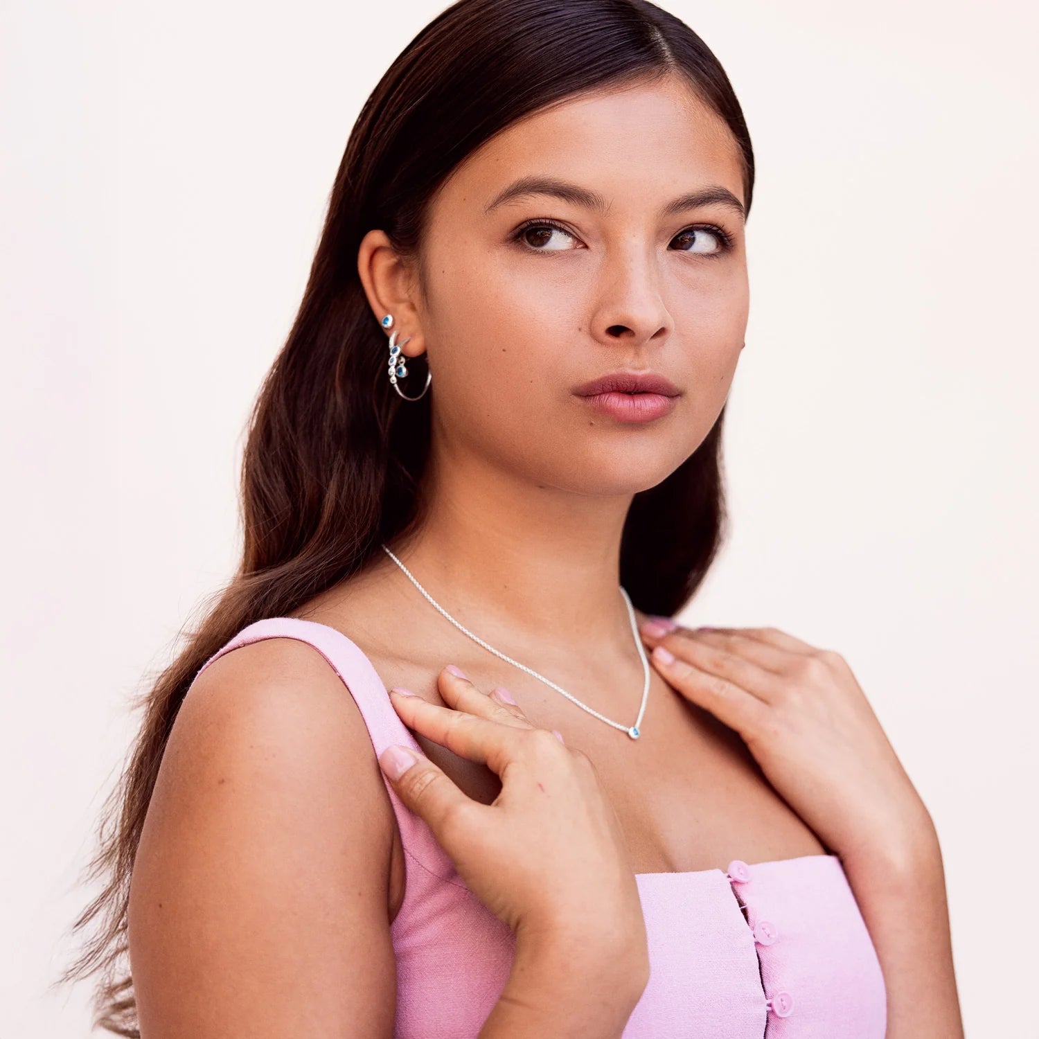 Each hoop is adorned with a striking mix of blue gemstones, including Blue Spinel, Blue Topaz, Aquamarine, and White Topaz. This combination creates a vivid play of colour, perfect for both everyday wear and special occasions.