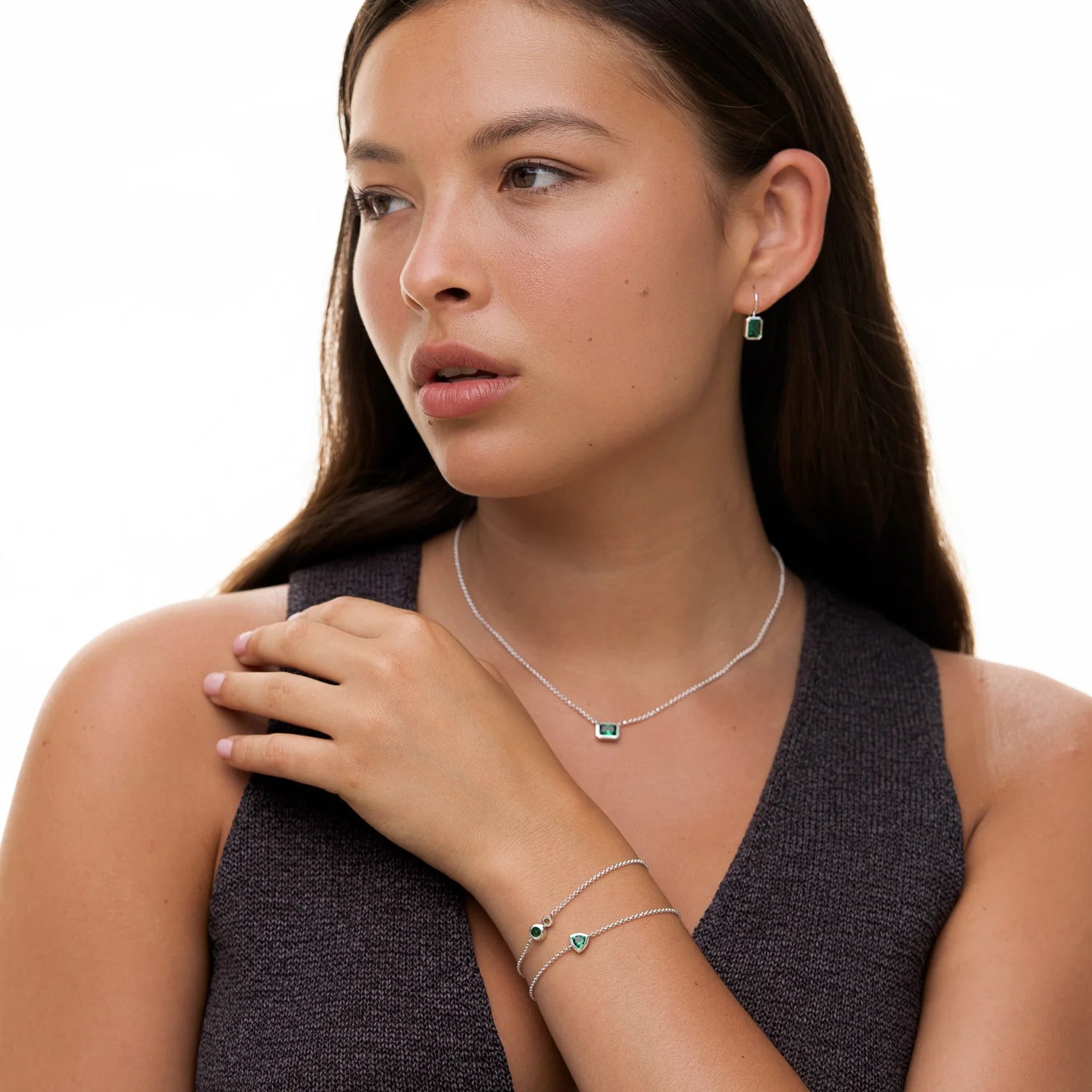 Made from sterling silver, these radiant octagon green garnet gemstones on fixed ear wires will captivate you with their deep green colour. The earrings are perfect as a standalone piece or a new addition to your ear stack.