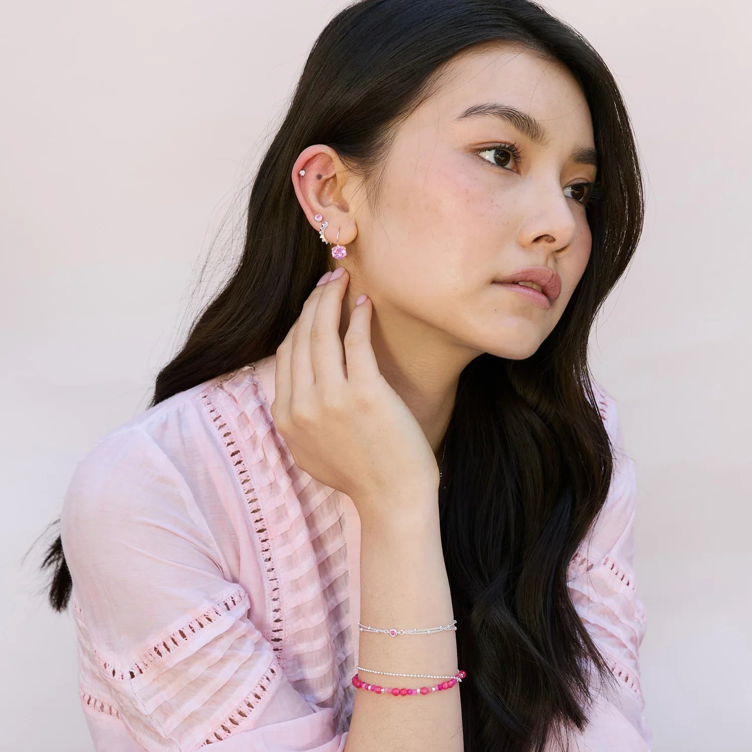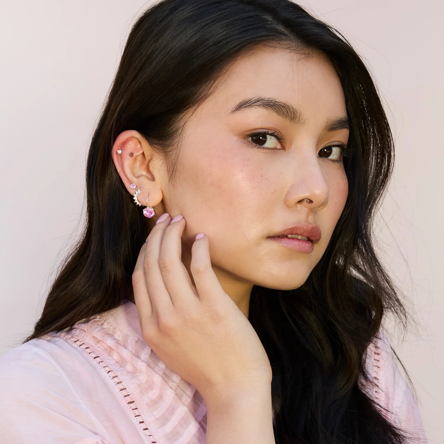These sterling silver hinged huggie hoops have an edgy star design. Perfect to wear everyday and great for layering with other styles.