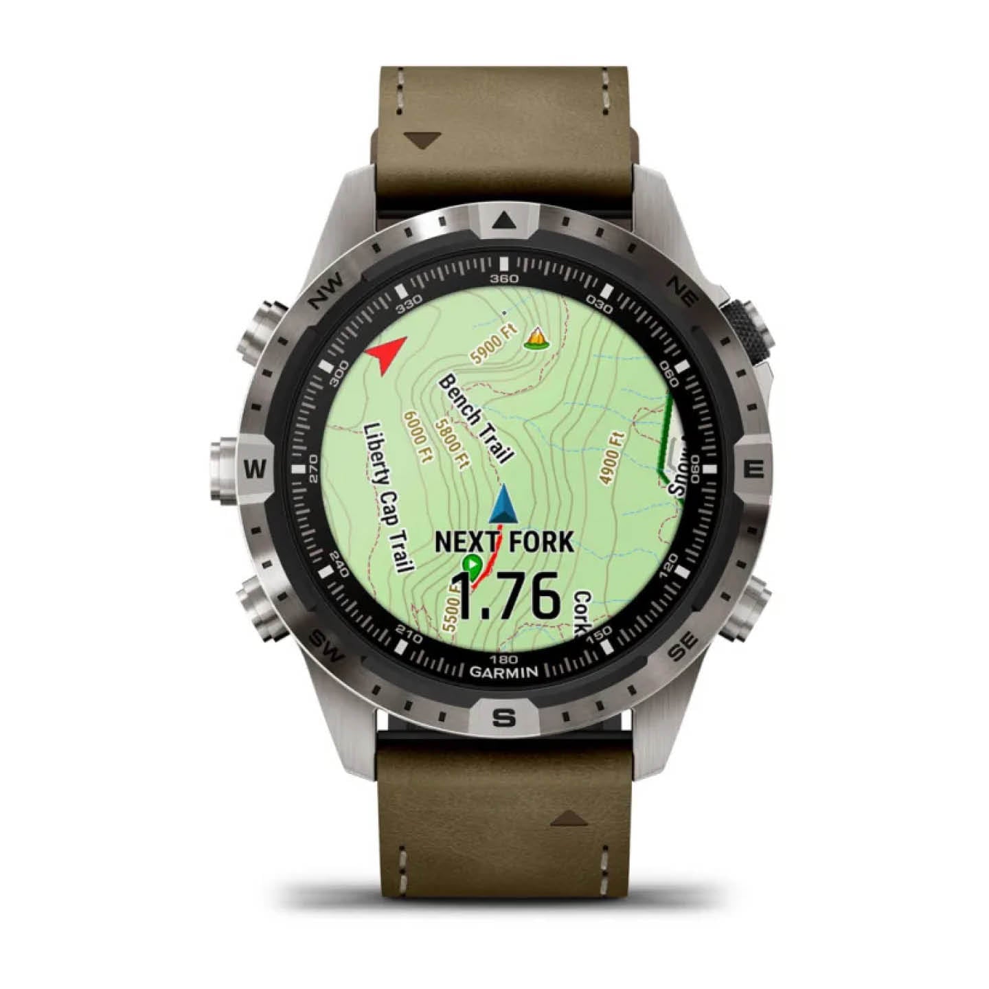 Explore uncharted territories. Push your limits. MARQ® Adventurer (Gen 2) is a modern tool watch like no other. It’s built from grade-5 titanium to be harder and stronger, with a stunning new AMOLED touchscreen display that gives you up to 16 days of battery life in smartwatch mode and up to 42 hours in GPS mode. Guide the expedition with preloaded TopoActive mapping with NextFork™, ClimbPro and real-time ascent data right on your wrist. Should adventure take you to higher altitudes, a Pulse Ox1 sensor monitors your blood oxygen saturation levels. Stay true to your path with built-in ABC navigation sensors and etched, 2-tone compass bezel. For adventurers looking to break new ground, it all starts here.