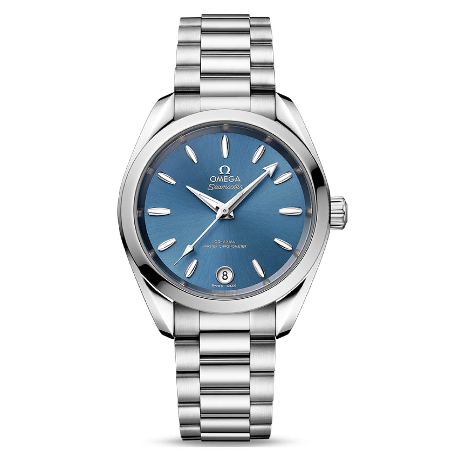 The Seamaster Aqua Terra is a superb tribute to OMEGA’s rich maritime heritage. This 34 mm model, has a symmetrical case and crown in fully polished stainless steel and a wave-edged design featured on the back.