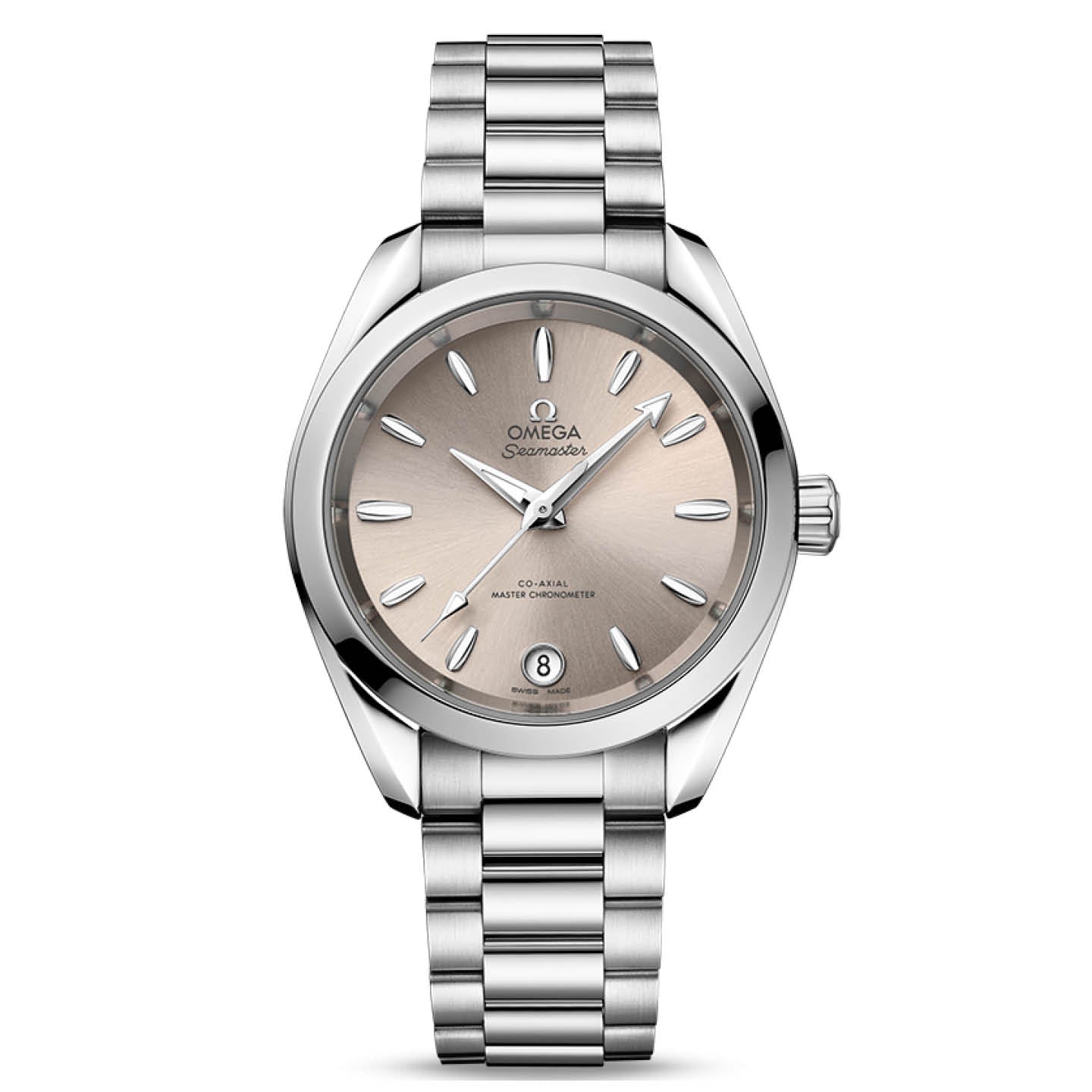 The Seamaster Aqua Terra is a superb tribute to OMEGA’s rich maritime heritage. This 34 mm model, has a symmetrical case and crown in fully polished stainless steel and a wave-edged design featured on the back.