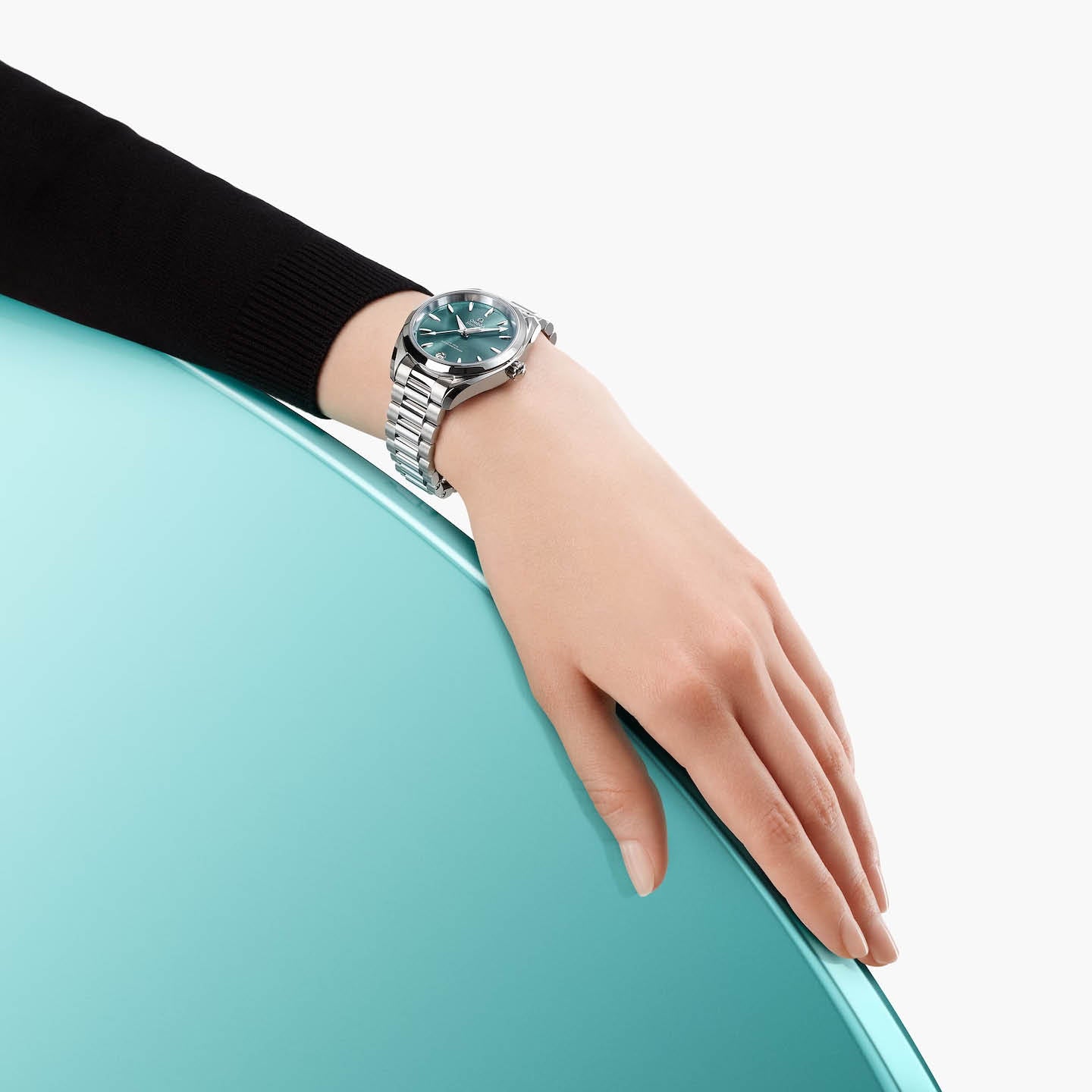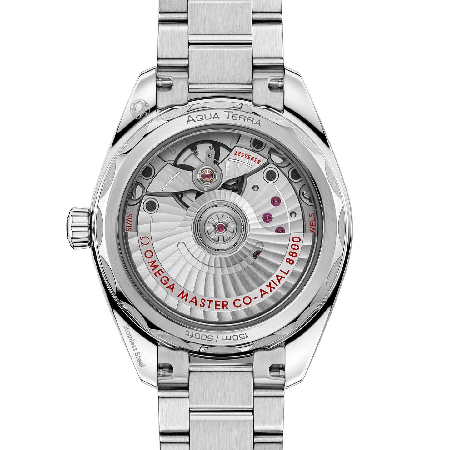 The Seamaster Aqua Terra is a superb tribute to OMEGA’s rich maritime heritage. This 34 mm model, has a symmetrical case and crown in fully polished stainless steel and a wave-edged design featured on the back.