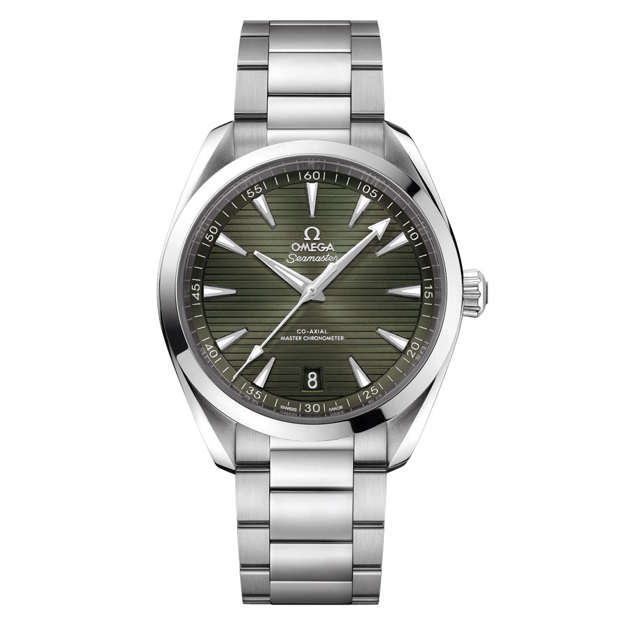 The Seamaster Aqua Terra is a superb tribute to OMEGA’s rich maritime heritage. In this 41mm model, the symmetrical case has been crafted from stainless steel, with a wave-edged design featured on the back. The green dial is sun-brushed and is distinguished by a horizontal “teak” pattern which is inspired by the wooden decks of luxury sailboats. There is also a date window at 6 o’clock and rhodium-plated hands and indexes filled with white Super-LumiNova. Presented on a polished and brushed bracelet, this timepiece is powered by the OMEGA Master Chronometer calibre 8900, certified at the industry’s highest standard by the Swiss Federal Institute of Metrology (METAS).