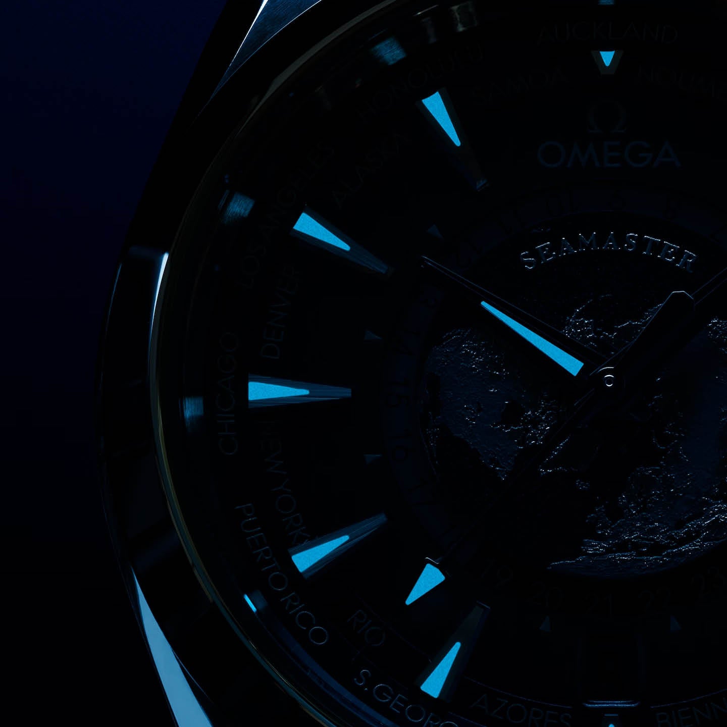 The dial is sun-brushed in OMEGA’s own Summer Blue with a gradient finish to reflect the watch’s level of water resistance and includes vertical teak stripes and rhodium-plated hands and indexes filled with a unique light blue Super-LumiNova.