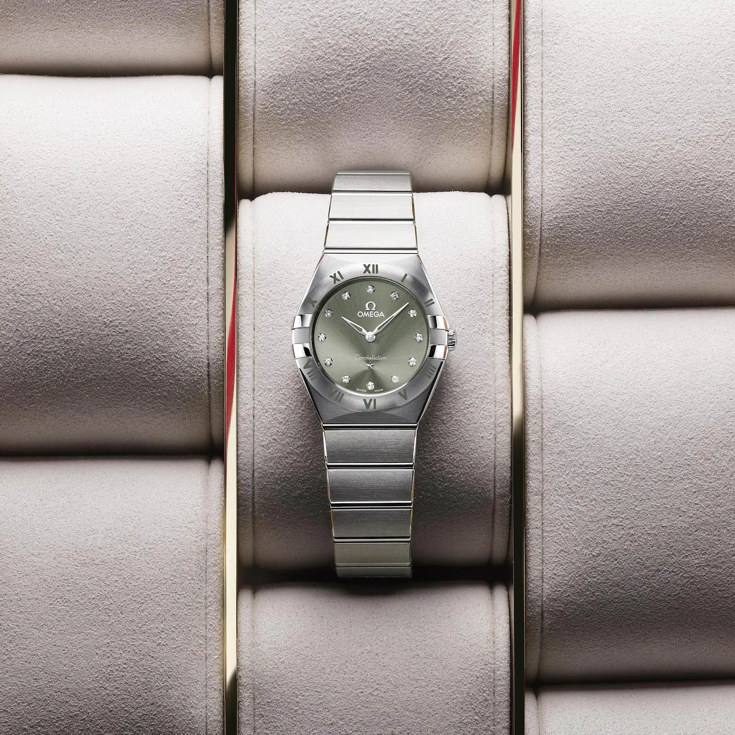 The dramatic and enduring design of the OMEGA Constellation is characterised by its famous half-moons, “claws” on the case and mono-rang bracelet.
