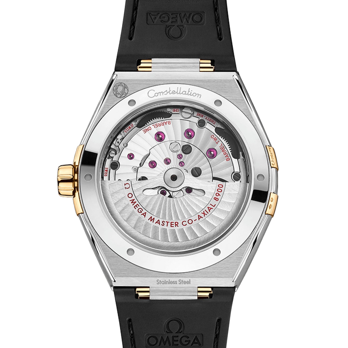 At the heart of this timepiece is the OMEGA Co-Axial Master Chronometer Calibre 8900, visible through the scratch-resistant sapphire crystal.