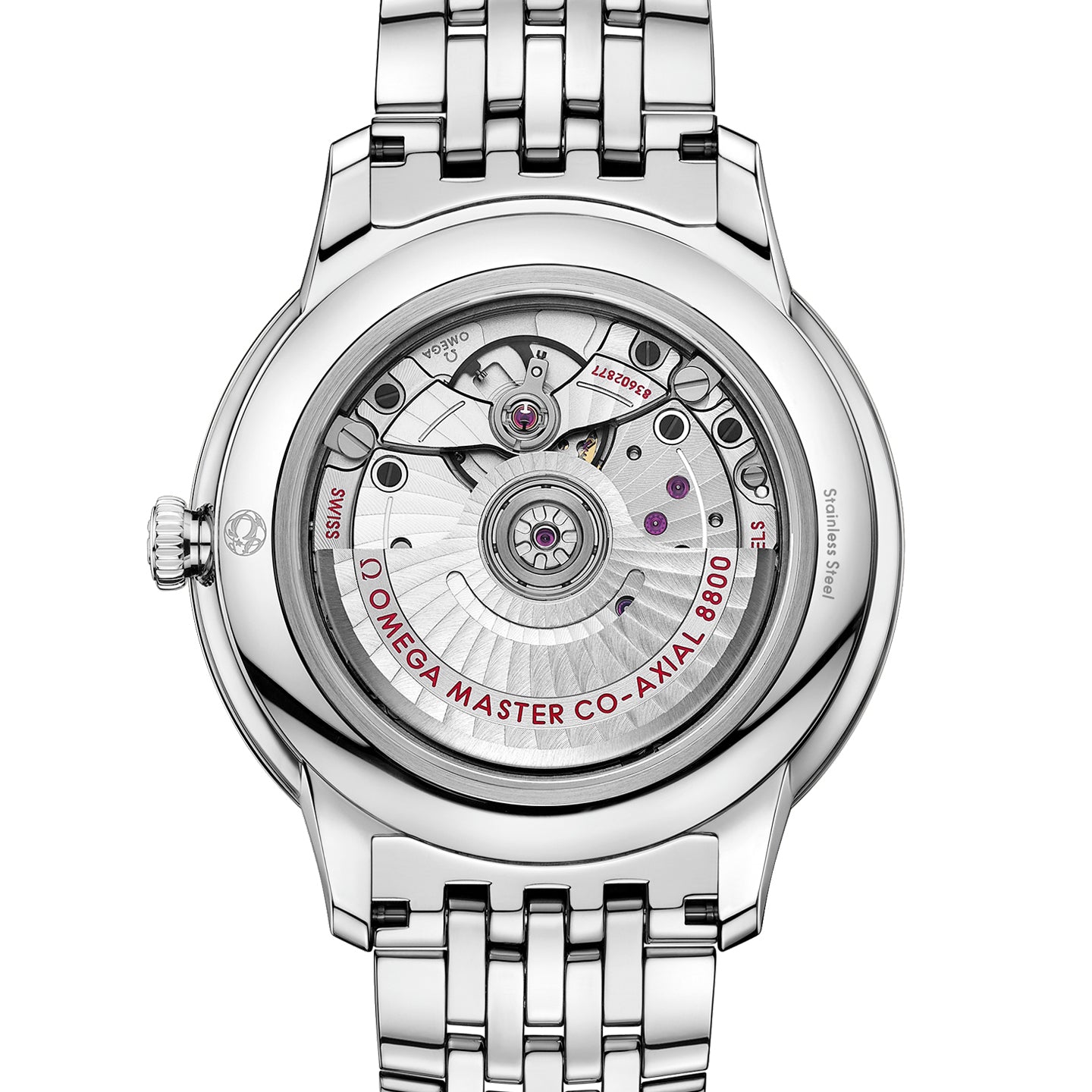 This Master Chronometer certified watch is presented on a stainless steel bracelet and is driven by the OMEGA Master Co-Axial Calibre 8800, which can be admired through the scratch-resistant sapphire crystal caseback.