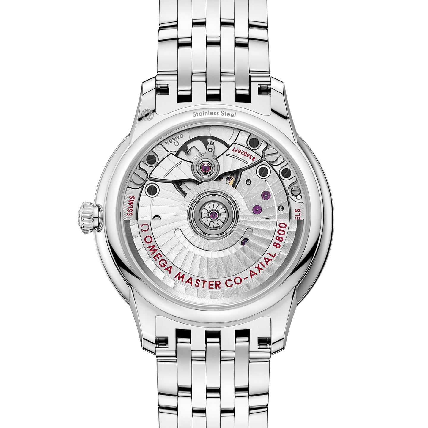 This Master Chronometer certified watch is presented on a stainless steel bracelet and is driven by the OMEGA Master Co-Axial Calibre 8800, which can be admired through the scratch-resistant sapphire crystal caseback.