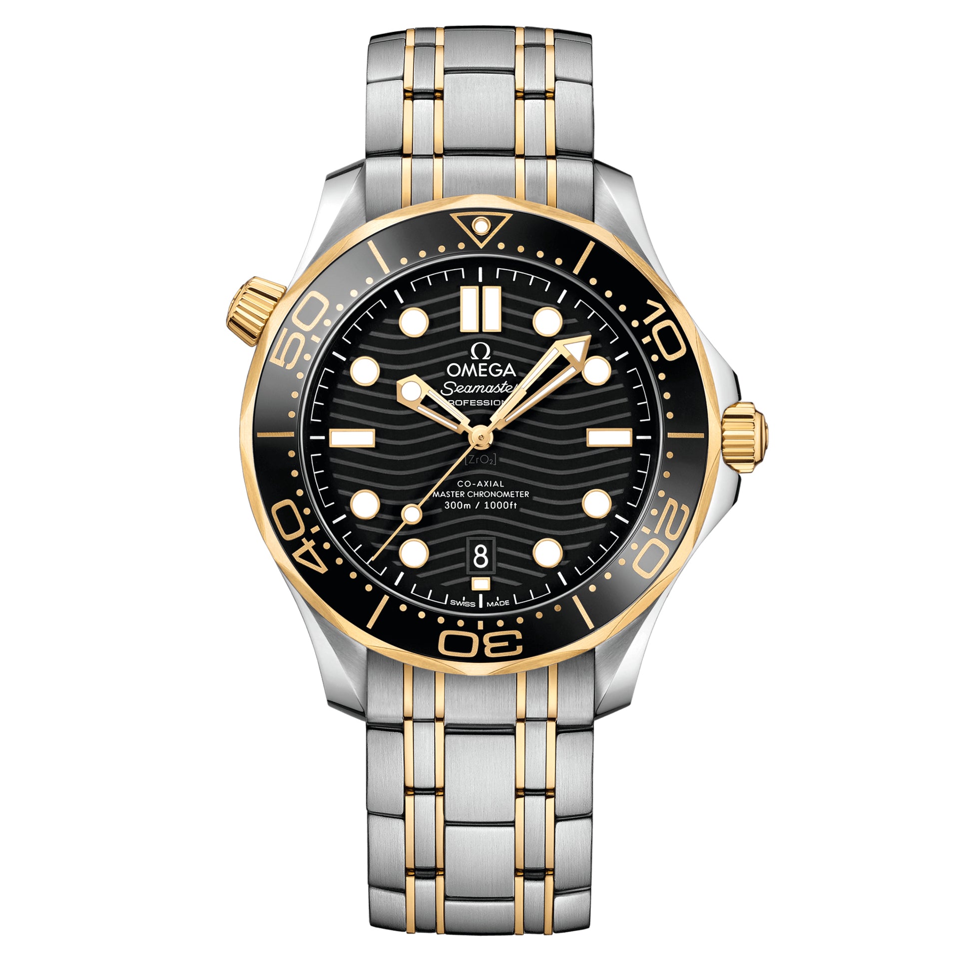 The bracelet, also crafted in stainless steel and 18K yellow gold, secures the watch with a folding clasp and push-buttons. Water-resistant to 300 metres, this model suits both professional dives and everyday wear. As a result, the Omega Seamaster Diver 300M 210.20.42.20.01.002 remains one of the most versatile luxury dive watches available today.