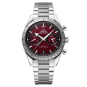 This 40.50 mm model, inspired by the legendary 1957 original, features a stainless steel case and a burgundy dial with rhodium-plated hour markers and “Broad Arrow” hands - all featuring white Super-LumiNova. There is a date window at 6 o’clock, a small seconds subdial at 9 o’clock, and 12-hour and 60-minute chronograph recorders on the subdial at 3 o’clock.