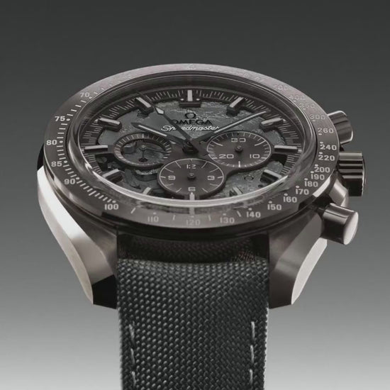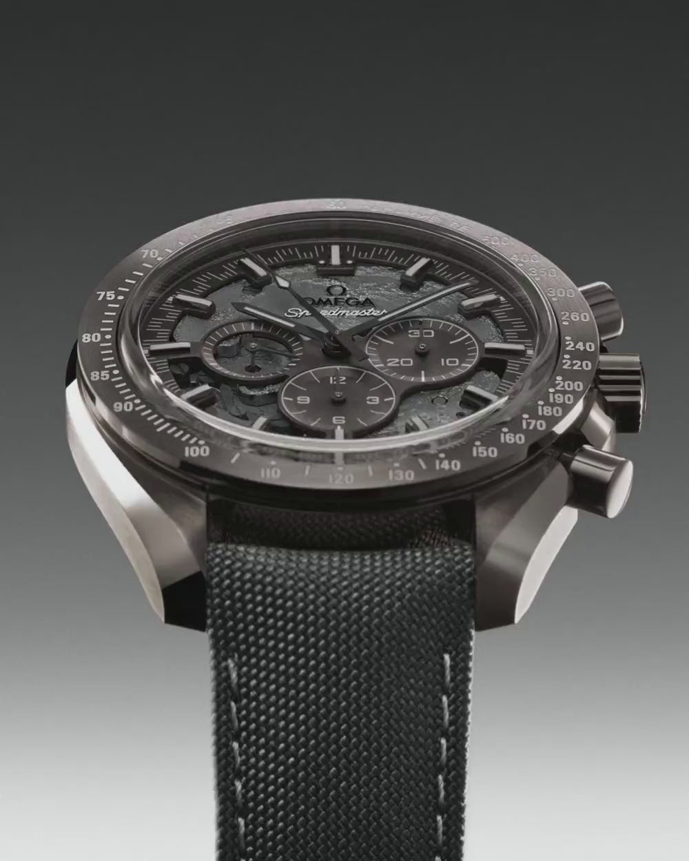 Honouring OMEGA’s legacy of space exploration, this Speedmaster Grey Side of the Moon features a 44.25 mm case in polished-brushed grey ceramic with a plasma treatment. The brushed bezel is also made from grey ceramic and features a laser-engraved tachymeter scale that is filled with white Super-LumiNova.