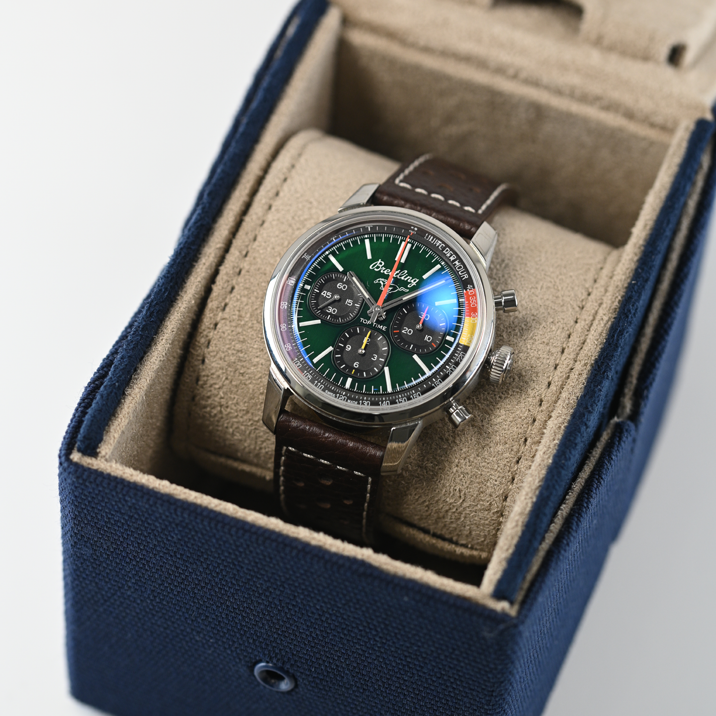 The 1960s was a decade of experimentation, fun, freedom and energy. Whether cruising on a motorcycle or revving up a sportscar, living life at full speed was the order of the day. Willy Breitling felt this change of pace and set out to design an unconventional chronograph that would capture the verve of era. He called it the Top Time. That spirited tradition continues today with Breitling partnering with some of the coolest names in wheels to create its Top Time designs.