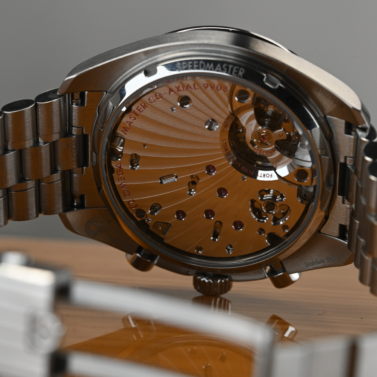 Presented on a stainless steel bracelet, the watch features a silvery small-seconds counter at 9H, and a silvery 60-minute and 12-hour recorder at 3H. Inside, the timepiece is driven by the OMEGA Co-Axial Master Chronometer Calibre 9908.