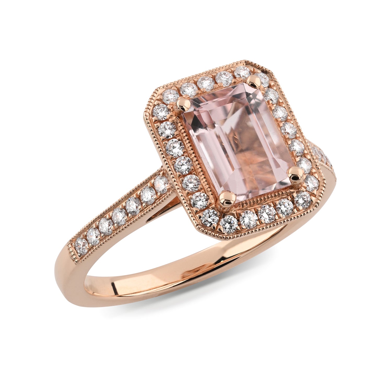 Classic four claw emerald cut pavé engagement rings, handcrafted in Cheltenham. Elegant...